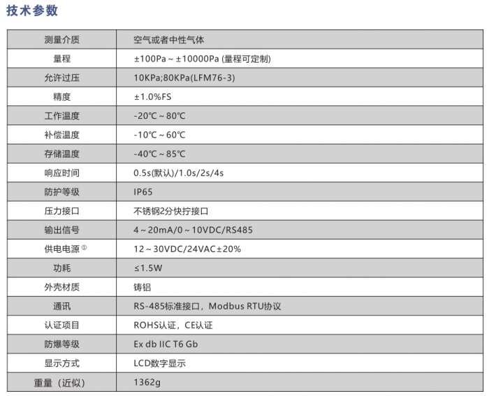 采用高精度MEMS微压芯体,精度高、工作温度范围广