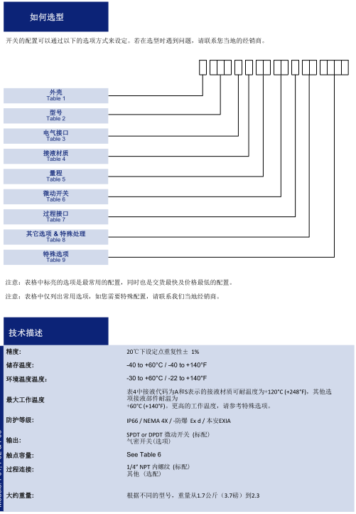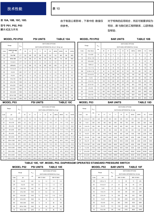 设定值范围最大可达700 bar (10,000psi)