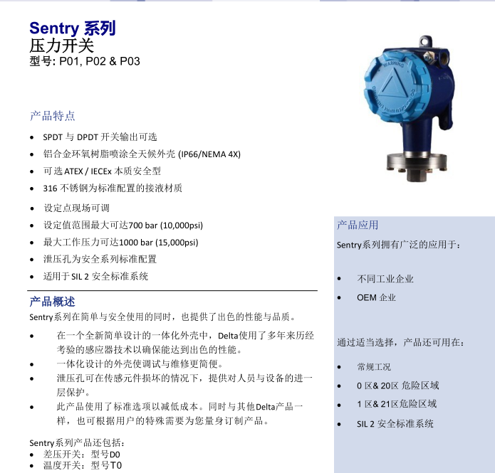 设定值范围最大可达700 bar (10,000psi)