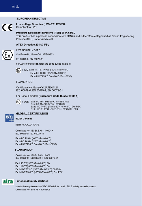 可选 ATEX / IECEx 本质安全型